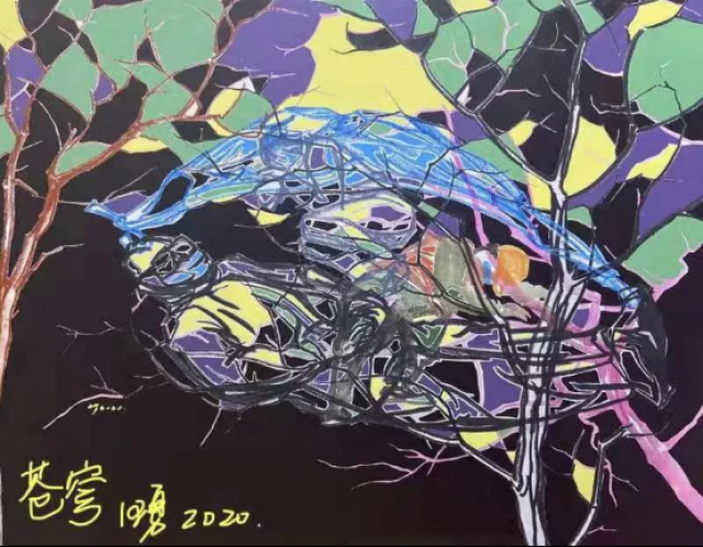 作品说明:苍穹是天空,给地球起保护作用。有人说,穿着防护服的医生们只不过是一群孩子换了一身衣裳。疫情面前,身着白色防护服的战士正用他们自己的方式守护着我们的家园。