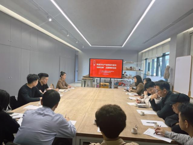随后,调研组前往名坊园内的鲁迅美术学院,受到了学院负责人郑博士的热情接待。郑博士详细介绍了学院近年来在陶瓷教育和研究方面取得的成就,特别是在推动陶瓷艺术现代化进程中的努力和成果,并在会议室就陶瓷文化产业转型升级的主题召开了座谈会,会上郑博士就面临人工智能AI在艺术设计上的巨大优势,讲解了传统陶瓷艺术面临的危机,同时也就三维打印新技术和新型陶瓷材料带来的陶瓷产业机遇做了分析。