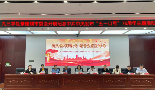 为纪念中共中央发布“五一口号”76周年,进一步夯实新时代团结奋斗的共同思想政治基础,4月30日,九三学社景德镇市委会在中共浮梁县委党校开展纪念中共中央发布“五一口号”76周年主题活动。市政协原副主席,九三学社市委会原主委李金有,中共景德镇市委统战部副部长、三级调研员、市侨联党组成员徐文生,市政府参事、九三学社市委会原主委于长征,市政府参事李锋,市政协港澳台侨和外事委员会主任蒋文娇、副主任涂燕应邀出席活动。市政协副主席、九三学社市委会主委、市红十字会常务副会长陈莉,市委会副主委方晓娟、熊宇、赵戈,社员代表共80余人参加活动。